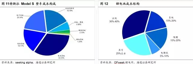 根據(jù)seeking alpha的推算數(shù)據(jù),以特斯拉Model S為例,其電池系統(tǒng)價值占整車成本的33.23%。在特斯拉的電池系統(tǒng)里,價值最高的毫無疑問是單體電池,其成本可占整個動力電池系統(tǒng)的83%。