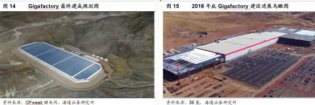 松下電器是特斯拉電池的唯一供應(yīng)商,二者的合作從2011年就已經(jīng)開始。2013年特斯拉和松下續(xù)簽4年合同,松下將在未來4年內(nèi)向特斯拉提供約20億塊電池。由于松下電池的產(chǎn)能仍不足以滿足特斯拉的生產(chǎn)需求,二者又在2014年簽訂協(xié)議,合作建立Gigafactory電池超級工廠,計劃年產(chǎn)能35GWh,目前已于2016年開業(yè),計劃在2018年生產(chǎn)出超過2013年全球產(chǎn)量總和的鋰離子電池。因此,未來特斯拉在單體電池這一塊將會逐步走向自給自足。