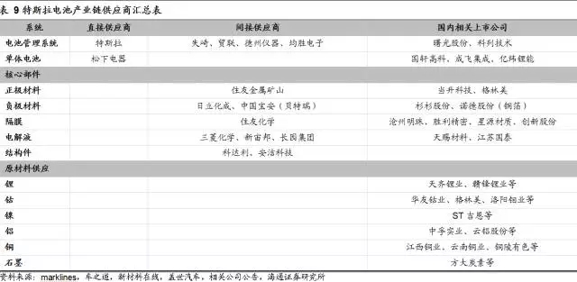 特斯拉電池產(chǎn)業(yè)鏈供應(yīng)商全梳理