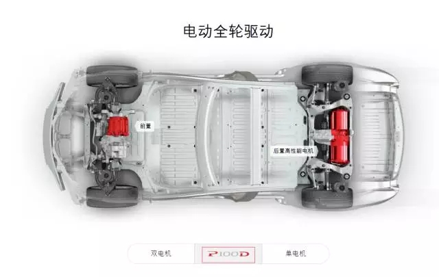 特斯拉Model系列汽車主要采用了3款電機(jī)——后輪驅(qū)動主電機(jī)、前輪驅(qū)動電機(jī)、高性能后輪驅(qū)動主電機(jī)。前兩款搭載在全輪驅(qū)動的Model S 和Model X車型上,高性能后輪驅(qū)動主電機(jī)則搭載在Model S P100D和Model X P100D旗艦車型上。下圖為特斯拉各種電機(jī)在汽車上的裝配位置布局。