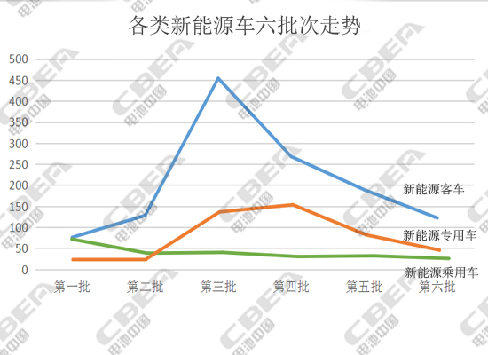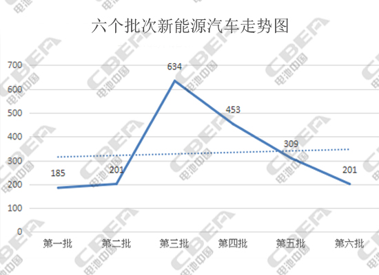 根據(jù)記者分析,受到國(guó)家新能源汽車新政策及已過(guò)目錄車型推倒重審的影響,車企1-2月加緊對(duì)重審車型進(jìn)行調(diào)整,因此在第3批公告中出現(xiàn)“扎堆式”增長(zhǎng)的情況(第3批入選車型總數(shù)為634款,在第2批入選車型數(shù)201款的基礎(chǔ)上再增加215.42%)。同時(shí)受補(bǔ)貼新政與系統(tǒng)能量密度等掛鉤的影響,部分車型退出新能源汽車的角逐,4-6批次入選的新能源車型數(shù)量呈下降態(tài)勢(shì)。且由于新車型研發(fā)存在一定周期,預(yù)計(jì)第七批通過(guò)車型數(shù)量與第六批基本持平,后期將有所抬升。