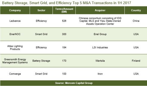 1-6月,能效企業(yè)在債務(wù)和公共市場(chǎng)融資達(dá)到17億美元,涉及交易9個(gè),去年同期為20億美元。上半年,能效企業(yè)并購(gòu)交易5個(gè),去年同期為10個(gè)。