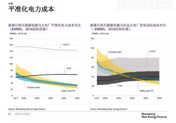 彭博分析師表示,“未來光伏、風(fēng)電的成本會更低,新建電廠會被取消,一半以上為清潔能源,其中39%的能源生產(chǎn)來自風(fēng)電、光伏等清潔能源;2020年能源價格將達到平均值,火電的平均利用小時將下降,可再生能源平均利用小時會增長。”