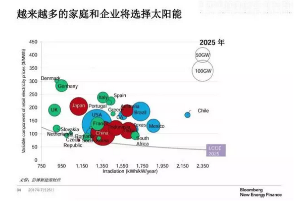 7月25日,彭博新能源財經(jīng)在京舉辦《2017新能源展望》發(fā)布會,會上,彭博新能源財經(jīng)提供出更多數(shù)據(jù)來支撐這一趨勢預(yù)測——隨著光伏的快速發(fā)展,太陽能發(fā)電成本不斷加速下降,將更進一步加快煤電的“死亡”。