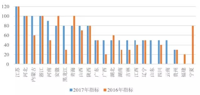 相對于2016年指標增加的省份一共有11個省,具體如下。
