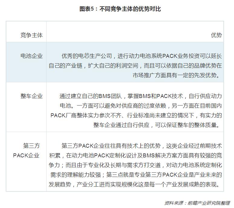 從企業(yè)競爭格局來看,目前,我國動力電池PACK行業(yè)參與企業(yè)主要有三類:電池企業(yè)、整車企業(yè)以及專業(yè)第三方PACK企業(yè),目前其市場占比分別是60%、20%、20%。