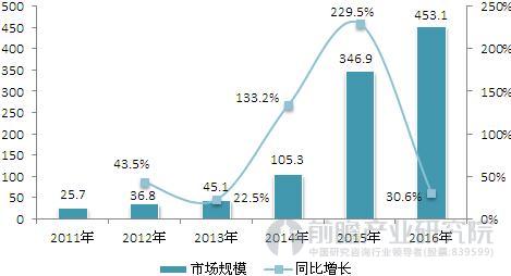 隨著動力電池行業(yè)發(fā)展的逐漸成熟,我國的動力電池PACK行業(yè)也得到了不斷的增長,尤其是在2015年,行業(yè)增速高達229.5%,容量也突破了300億元,達到346.9億元。2016年,行業(yè)市場規(guī)模為453.1億元,同比增長30.6%。