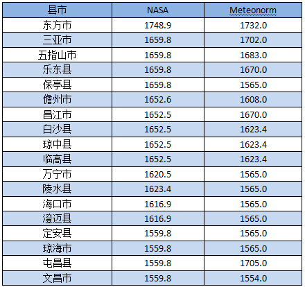 海南省的太陽能資源呈西南高東北低的格局,全省屬于太陽能資源三類地區(qū),西南部東方、樂東、昌江、三亞、陵水、保亭等縣市全年日照時數(shù)2400-3000小時,年輻射總量5500-6300 MJ/m2;中部儋州、臨高、白沙、瓊中、萬寧、五指山等縣市,年輻射總量5300-5500 MJ/m2;東北部??凇⒊芜~、文昌、定安、瓊海、屯昌等縣市,年輻射總量4800-5300 MJ/m2。