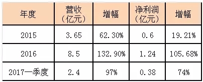 實(shí)際上,在2017年第一季度,贏合科技就取得了不俗的表現(xiàn)。公告顯示,2017年一季度企業(yè)實(shí)現(xiàn)營(yíng)收2.4億元,同比增長(zhǎng)97%,歸屬于上市公司股東凈利潤(rùn)達(dá)3751萬(wàn)元,同比增長(zhǎng)74%。