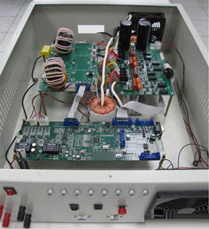微電網(wǎng)經(jīng)由靜態(tài)開關與市電併聯(lián),當內(nèi)部發(fā)生故障或外部市電故障時,靜態(tài)開關運用主動式孤島偵測技術,快速確認故障并完成隔離動作;而儲能系統(tǒng)藉由雙向功率轉換器(圖2)連結微電網(wǎng)電力匯流排,于一個周期內(nèi),由電流源快速轉換為一穩(wěn)定電壓源,提供能量給予負載使用。