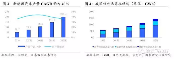 動(dòng)力領(lǐng)域滲透加速,軟包鋰電池高速發(fā)展。軟包動(dòng)力鋰電池技術(shù)的第一梯隊(duì)主要是日韓企業(yè),尤其是LG是軟包動(dòng)力鋰電的全球龍頭,其產(chǎn)品的能量密度及穩(wěn)定性均較佳,雪佛蘭、日產(chǎn)等車企主要采用LG軟包電池,總體來看,日韓等國(guó)際車企對(duì)于軟包鋰電的技術(shù)路線認(rèn)可度較高。國(guó)內(nèi)目前主流的電動(dòng)車企也在加速軟包電池的應(yīng)用。北汽、上汽等乘用車企紛紛開始嘗試使用軟包電池,其中萬向A123和孚能科技軟包電池占據(jù)主流。國(guó)內(nèi)三元軟包技術(shù)進(jìn)步明顯,能量密度大幅提升,以孚能科技為例,單體能量密度達(dá)到220wh/kg,pack后在140-160wh/kg之間。軟包趨勢(shì)興起,動(dòng)力電池企業(yè)為搶占先機(jī),加大軟包擴(kuò)產(chǎn)力度,9家軟包電池企業(yè)2017年底軟包電池產(chǎn)能將達(dá)27GWh。我們認(rèn)為鋰電池需求與軟包滲透率并肩增長(zhǎng),2020年軟包滲透率41%左右,軟包電池需求將達(dá)59GWh,GAGR為35%。