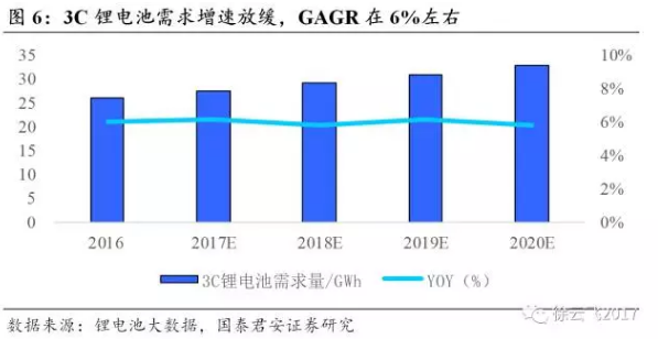 軟包鋰電池的下游市場(chǎng)可細(xì)分為3C領(lǐng)域、動(dòng)力領(lǐng)域和儲(chǔ)能領(lǐng)域。軟包電池的應(yīng)用首先是在3C領(lǐng)域,其發(fā)展歷程隨著數(shù)碼電池的內(nèi)部集成進(jìn)程而快速發(fā)展,尤其是在筆記本電腦、手機(jī)等電池的集成化,截止到2016年軟包電池的滲透率近60%,但近年來傳統(tǒng)3C產(chǎn)品消費(fèi)增速的放緩,高滲透率下,相應(yīng)軟包的需求增速也在逐步放緩。與此同時(shí),隨著新能源汽車持續(xù)高增長(zhǎng),2016年動(dòng)力電池出貨量大增成為鋰電池行業(yè)發(fā)展的主驅(qū)動(dòng)力,當(dāng)前軟包鋰電市場(chǎng)滲透率也不斷提高,2016年近12%。而儲(chǔ)能市場(chǎng)則是鋰電池應(yīng)用的新興領(lǐng)域,短期應(yīng)用軟包較少,未來隨著軟包成本的下降,在此領(lǐng)域也具備較大的增長(zhǎng)潛力。