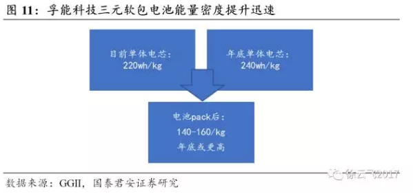 單體及系統(tǒng)能量密度提升37%以上。軟包鋰電的能量密度提高可通過自身優(yōu)異的物理特性而提高,一是由于采用鋁塑膜后減少了結(jié)構(gòu)件的應(yīng)用,軟包電池較同等容量的鋼殼鋰電池質(zhì)量減輕最大可達(dá)40%,較鋁殼鋰電池質(zhì)量可輕約20%。二是因?yàn)檐洶O(shè)計(jì)的形狀容易改變,可根據(jù)實(shí)際的需要進(jìn)行定制從而提高空間利用率。目前孚能科技的軟包電池單體能量密度達(dá)到220wh/kg,系統(tǒng)能量密度在140-160wh/kg之間,其能量密度遠(yuǎn)高于采用相同材料體系的動(dòng)力鋰電池。