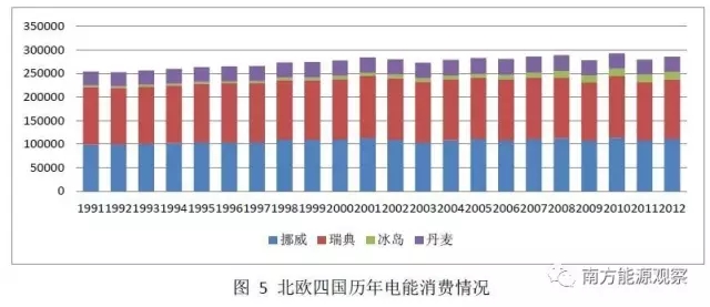 北歐四國1991年-2012年裝機容量和用電量增速緩慢,11年裝機容量增速19.80%,用電量年均增速為12.32%。其中丹麥裝機容量增速最快,為45.87%。冰島、挪威、瑞典裝機增速分別為30.8%、19.8%、8.36%。芬蘭用電量增速最快,為325.60%,挪威、瑞典、丹麥分別為11.77%、4.29%、6.6%。裝機增速略高于電量增速。