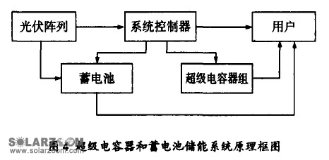 傳統(tǒng)獨立光伏發(fā)電系統(tǒng)的能量存儲普遍采用蓄電池彌補太陽能光伏發(fā)電系統(tǒng)輸人能量的不穩(wěn)定性,但蓄電池也存在一些難以克服的缺點,如循環(huán)壽命短、嚴格的充放電電流等,限制了獨立光伏·系統(tǒng)的大規(guī)模發(fā)展。蓄電池成本占系統(tǒng)造價的20%一30%, 光伏系統(tǒng)工作環(huán)境和工作過程的特殊性導(dǎo)致蓄電池過早失效或容量損失, 進一步加大了光伏系統(tǒng)的成本, 這是困擾獨立太陽能發(fā)電系統(tǒng)發(fā)展的一大難題。因此,近年來超級電容儲能得到較快發(fā)展。