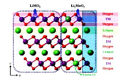 下圖為富鋰三元正極材料x(chóng)Li2MnO3˙(1-x)LiMn1/3Ni1/3Co1/3O2(0.1≤x≤0.5)的結(jié)構(gòu)示意圖,由于其特殊的結(jié)構(gòu),可脫出更多的鋰,具有寬電壓窗口和高比容的優(yōu)勢(shì),近年來(lái)被研究者所青睞。