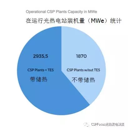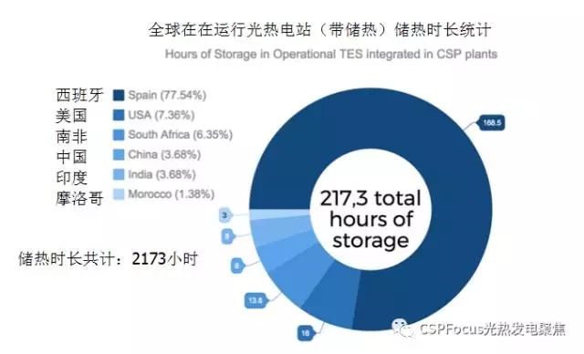 以下圖表為全球在運(yùn)行的配備儲(chǔ)熱系統(tǒng)的光熱電站情況統(tǒng)計(jì),大部分集中在老牌市場(chǎng)西班牙。以中國(guó)、中東、非洲為代表的新興市場(chǎng)在未來(lái)將占主導(dǎo)。