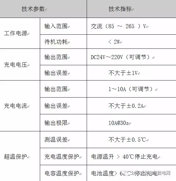 表1. 超級電容模組的充電電源技術目標參數
