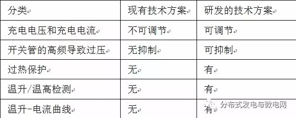 超級電容模組充電電源設計技術指標及與現有充電電源方案的比較,具體表1-2所示:
