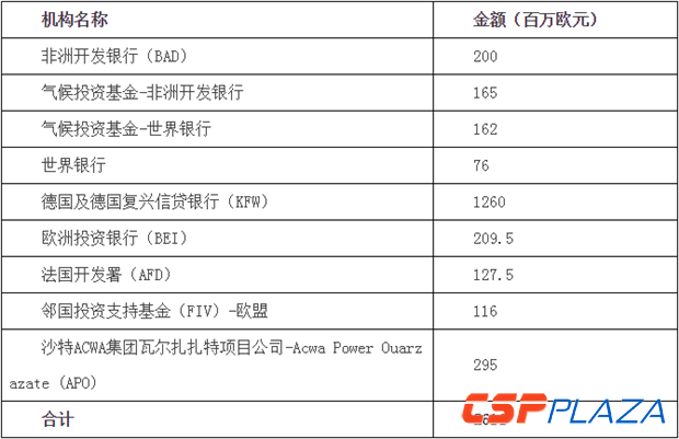 摩洛哥2009年宣布的2000MW太陽能項目所需資金巨大,約需90億美元,完全憑借摩本身財力難以承擔。據(jù)沙特ACWA集團披露,其中標的正在實施中的瓦爾扎扎特太陽能二期和三期項目資金構(gòu)成為80%的債務(wù)和20%的自有資金。其中債務(wù)由摩洛哥太陽能署承擔,國際開發(fā)機構(gòu)對其提供融資支持。