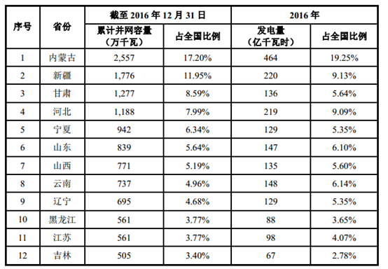 2016 年我國風電產(chǎn)業(yè)發(fā)展并網(wǎng)運行統(tǒng)計數(shù)據(jù)
