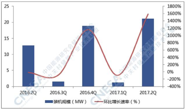 圖4 連續(xù)五個(gè)季度新增投運(yùn)項(xiàng)目的裝機(jī)分布及環(huán)比增長(zhǎng)率(中國(guó))