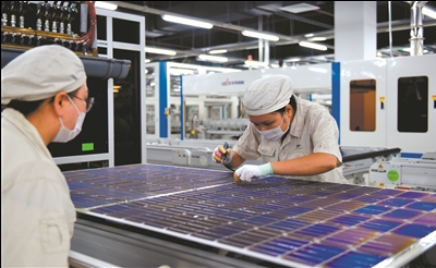 中國儲能網(wǎng)訊:江蘇林洋光伏科技有限公司實施光伏2GWN型高效太陽能電池及組件項目,計劃總投資20億元,目前一期3.2萬平方米車間已竣工,生產(chǎn)設(shè)備已安裝調(diào)試并進(jìn)入試生產(chǎn)階段。二期、三期項目計劃于2018年和2019年實施。項目全部達(dá)產(chǎn)后,預(yù)計年銷售收入80億元。圖為工人們正在調(diào)試設(shè)備試生產(chǎn)N型高效太陽能電池。