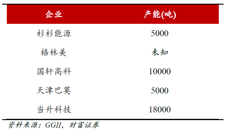 部分企業(yè)NCA 產(chǎn)能規(guī)劃