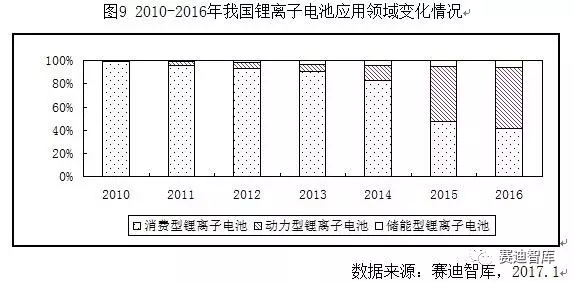 從2015年開始,隨著動力型鋰離子電池需求迅猛增長,我國鋰離子電池產業(yè)結構發(fā)生了顯著變化。按照鋰離子電池產品容量計算,由于電動汽車產量迅猛增長,加上電動自行車中鋰離子電池滲透率穩(wěn)步提升,動力型鋰離子電池市場需求快速提高,2016年動力型鋰離子電池市場占比達到52%,首次突破50%并超過消費型鋰離子電池,而2015年還只有47%;消費型鋰離子電池市場占比繼續(xù)下滑,2016年約為42%,2014年和2015年這一占比還分別為83%和48%;儲能型鋰離子電池在光伏分布式應用以及移動通信基站儲能電池領域的應用不斷擴大,2016年達到6%,比起2014年的4%、2015年的5%,一年上一個臺階。