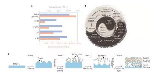 鋰離子電池對(duì)人們的日常生活產(chǎn)生了深遠(yuǎn)的影響,商業(yè)化的使用碳負(fù)極的鋰離子電池現(xiàn)已基本接近其理論容量,難以滿足便攜電子設(shè)備、電動(dòng)汽車和大規(guī)模能量存儲(chǔ)等方面越來(lái)越高的應(yīng)用要求。在可用作鋰電池負(fù)極的材料中,金屬鋰具有最大的理論能量密度(3860 mAh g?1或2061 mAh cm?3)和最低的電化學(xué)勢(shì)(相對(duì)于標(biāo)準(zhǔn)氫電極為-3.04 V),是下一代高能鋰電池如Li-S和Li-空氣電池的負(fù)極材料的最佳選擇。然而,金屬鋰負(fù)極在實(shí)際應(yīng)用中易生成枝晶,解決安全性和穩(wěn)定性的問題是當(dāng)前金屬鋰負(fù)極研究的重點(diǎn)。斯坦福大學(xué)材料科學(xué)與工程系的崔屹教授(通訊作者)等人在Nature Nanotechnology發(fā)表了題為“Reviving the lithium metal anode for high-energy batteries”的綜述,首次系統(tǒng)總結(jié)了當(dāng)前對(duì)于金屬鋰負(fù)極的理解,強(qiáng)調(diào)了近期在材料設(shè)計(jì)和先進(jìn)表征方法上的重大進(jìn)展,并且為金屬鋰負(fù)極未來(lái)的研究方向提供了參考。