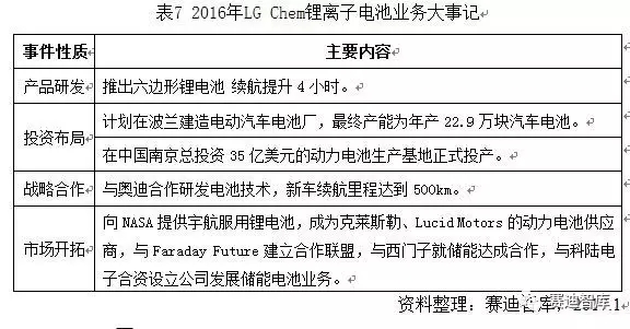 LG Chem是LG集團(tuán)最重要的支柱產(chǎn)業(yè)之一,目前主要以基礎(chǔ)材料、信息&電子材料、鋰離子電池三大業(yè)務(wù)為主。1999年正式進(jìn)入鋰離子電池領(lǐng)域,到2016年超過(guò)三星SDI成為全球第一大鋰離子電池生產(chǎn)企業(yè)。其鋰電業(yè)務(wù)以小型電池為主,近兩年動(dòng)力電池和儲(chǔ)能電池尤其是動(dòng)力電池發(fā)展十分迅猛。2016年LG Chem在中國(guó)建設(shè)的動(dòng)力電池工廠實(shí)現(xiàn)量產(chǎn),同時(shí)加大了市場(chǎng)開(kāi)拓力度,其動(dòng)力電池及儲(chǔ)能電池業(yè)務(wù)快速增長(zhǎng),超過(guò)松下、三星成為全球最大的鋰離子電池生產(chǎn)企業(yè)。截至至2016年12月31日,LG Chem在韓國(guó)證券交易所的收盤(pán)價(jià)為265000韓元/股,其市值約為19.6萬(wàn)億韓元,較2015年同期下降了20%。