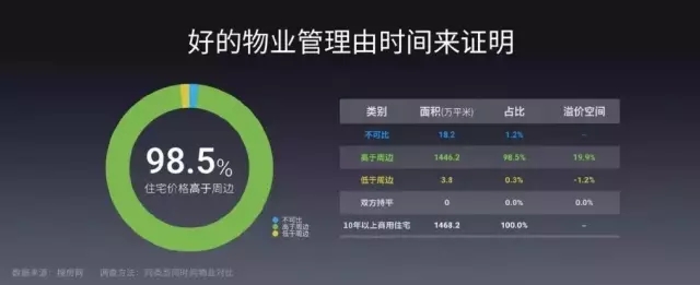 而根據(jù)搜房網(wǎng)統(tǒng)計(jì),萬科持有的10年以上商用住宅中,價(jià)格高于周邊的占98.5%,低于周邊的只有0.3%,溢價(jià)空間平均達(dá)到19.9%。