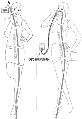 通常220V的民用電通過變壓器充電器,等到手機(jī)輸出時(shí)已經(jīng)只有3~5V,對人體沒有危害。但是,如果充電器線路老化,金屬線頭突出等,人體又有直接接觸,那效果就“跟直接摸電門是一樣”的,相當(dāng)于人體直接接觸220V的電壓,可能致死。