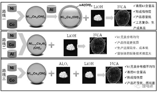 目前國(guó)內(nèi)外主要NCA生產(chǎn)企業(yè)通常采用的技術(shù)路線有如下3種:
