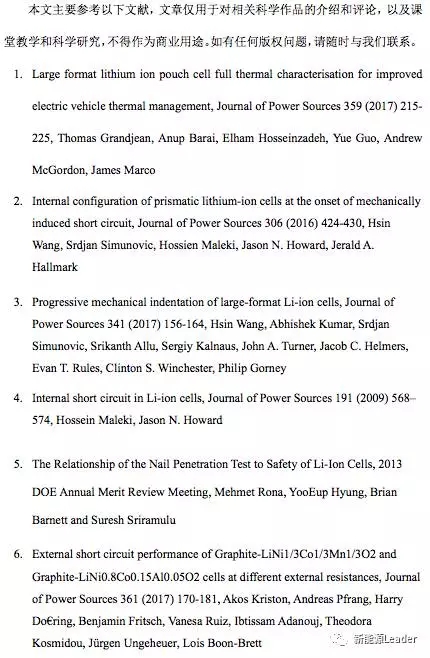 在擠壓測(cè)試中,隨著電池變形程度的增加,正負(fù)極集流體會(huì)首先被撕裂,并沿著45度失效線發(fā)生滑移,活性物質(zhì)也會(huì)進(jìn)入到45度失效線內(nèi),隨著隔膜變形程度的不斷增加,隔膜最終達(dá)到失效點(diǎn),引起正負(fù)極短路的發(fā)生【2】,擠壓造成的正負(fù)極短路主要是以點(diǎn)狀短路為主【3】,因此會(huì)在短路點(diǎn)產(chǎn)生非常大的電流,熱量集中釋放,引起短路點(diǎn)的溫度急劇上升,因此很容易引發(fā)熱失控。