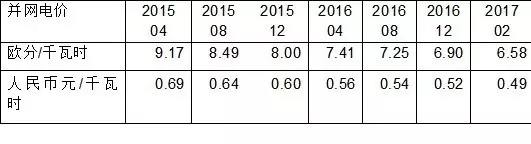 為了促使光伏發(fā)電的并網(wǎng)電價迅速下降,以減輕電力用戶的負(fù)擔(dān),德國從2015年開始,對大型光伏地面電站實行上網(wǎng)電價招標(biāo)制:最低價者中標(biāo),按中標(biāo)的電力價格售電,20年不變。從2015年4月到2017年2月,在不到兩年的時間里,招標(biāo)制促使德國大型地面光伏電站的并網(wǎng)電價下降了28.2%。