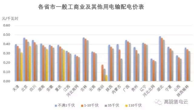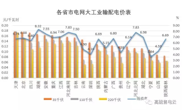 目前,有19個省市已經對輸配電價進行了核定,以下是輸配電價對比。