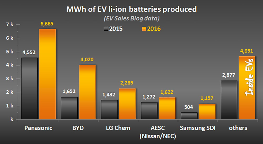 根據(jù)一些市場調(diào)研公司的統(tǒng)計(jì),雖然具體名次有別,但全球動(dòng)力電池市場份額最高的 3 家企業(yè)大多為松下、比亞迪、LG 化學(xué),日產(chǎn)和 NEC 合資成立的電池公司 AESC 也在前列。