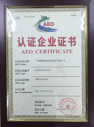 中國儲能網(wǎng)訊:近日,經(jīng)過中國海關(guān)專家組認(rèn)證審核,廣州鵬輝能源科技股份有限公司(簡稱“鵬輝能源”,股票代碼:300438)獲得中國海關(guān)認(rèn)定的最高信用等級“海關(guān)高級認(rèn)證企業(yè)(AEO)證書”。