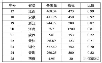 表2:各省光伏的備案量、指標(biāo)與比值