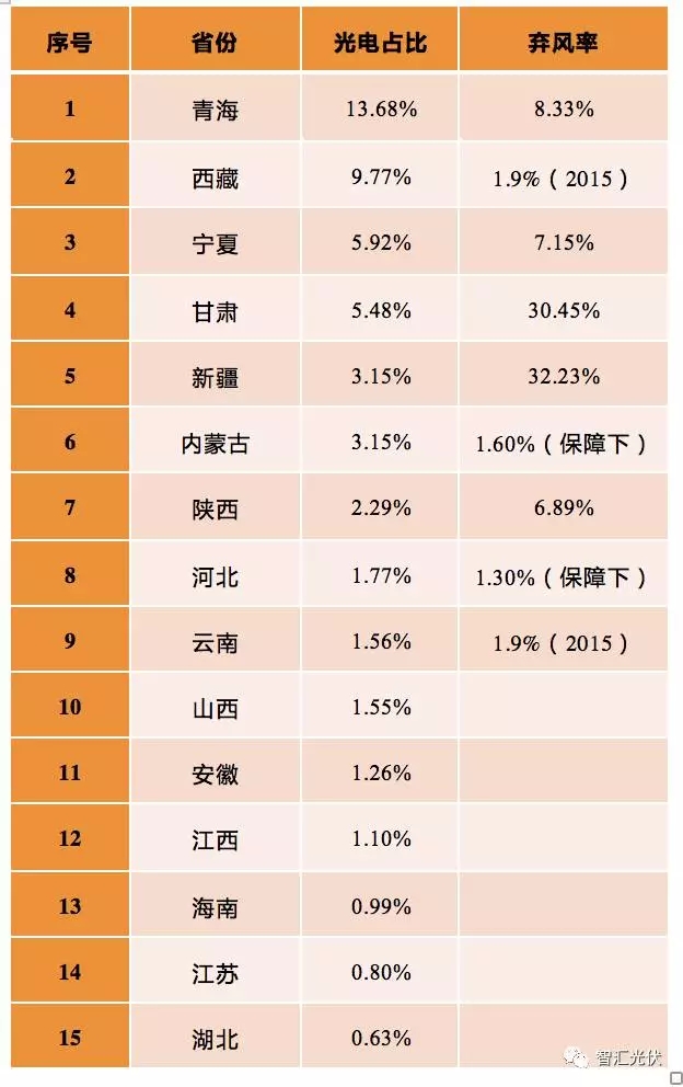 說明:西藏、云南采用了2015年的數(shù)據(jù),河北、內(nèi)蒙為在保障小時下的棄光率。
