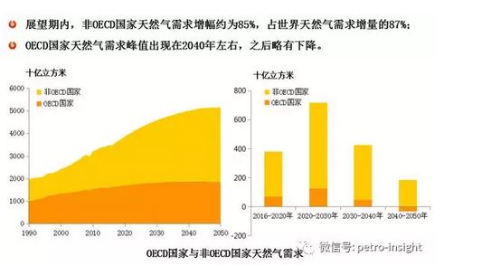 4.2050年世界天然氣需求約為5.1萬億立方米,增幅約48%,是增速最快的化石能源;非OECD國家占增量的85%。