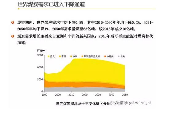 非OECD國家煤炭需求仍有增長空間,約2030年達峰值64.5億噸,較2015年增加7%;2050年降至55億噸;2050年OECD國家煤炭需求降至9.7億噸。