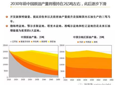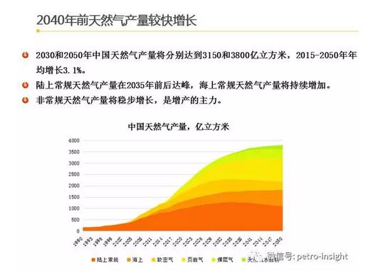 5.中國原油產量在2030年前維持在2億噸水平,之后逐步下滑。2040年前天然氣產量將較快增長,2050年產量在3800億立方米左右。