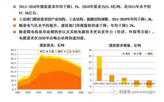 中國煤炭需求峰值已過,未來將持續(xù)下降,2030年后降速加快。