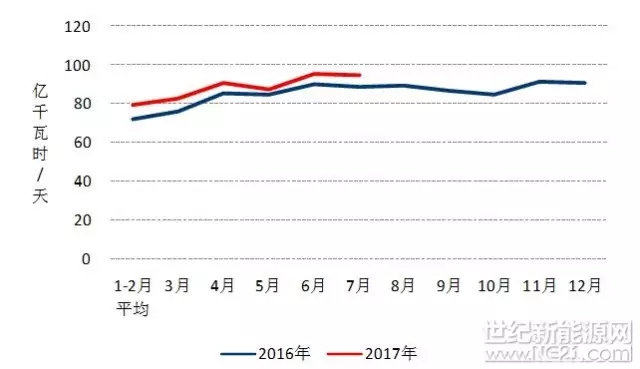 圖3 2016、2017年以來分月制造業(yè)日均用電量