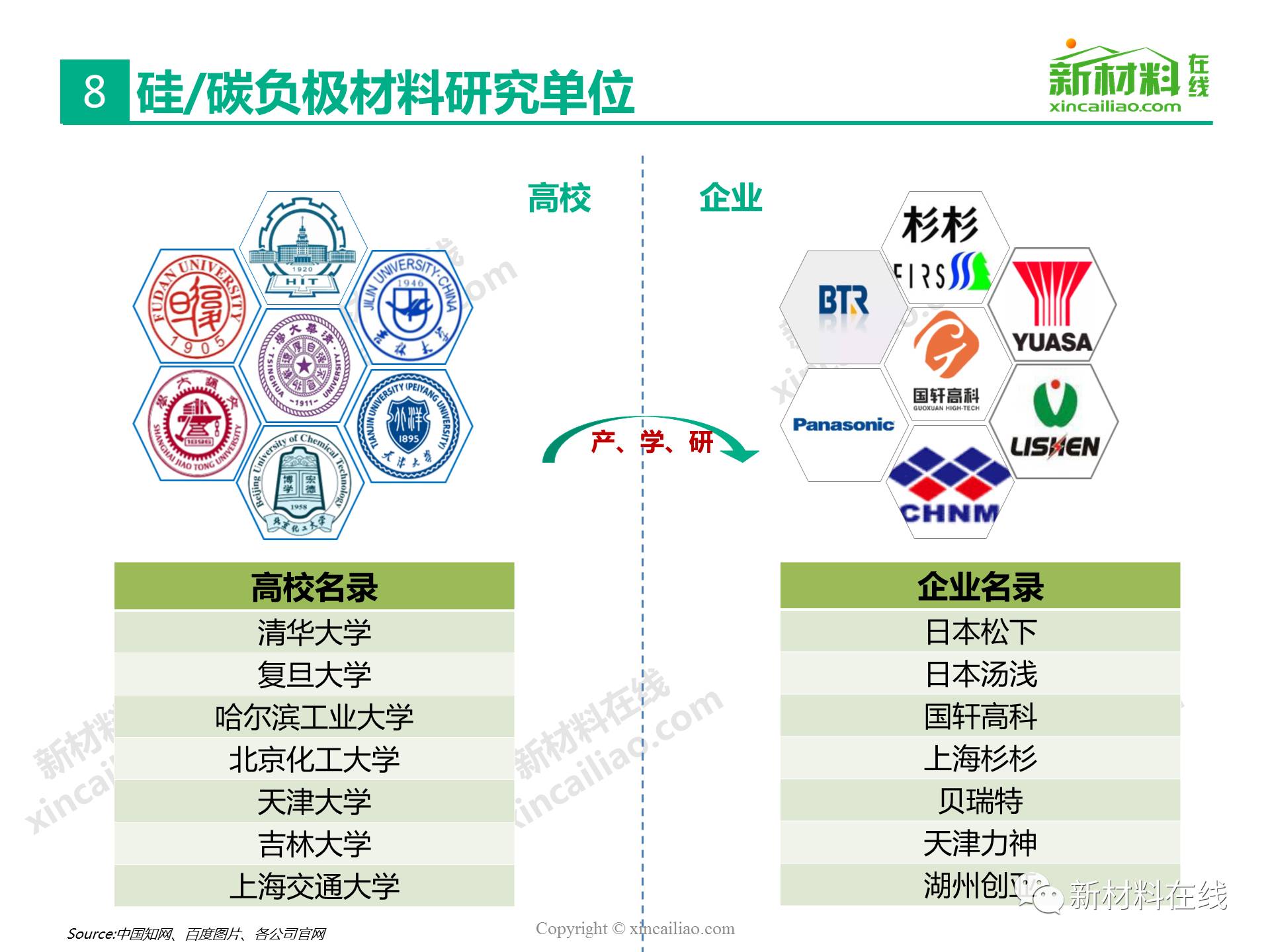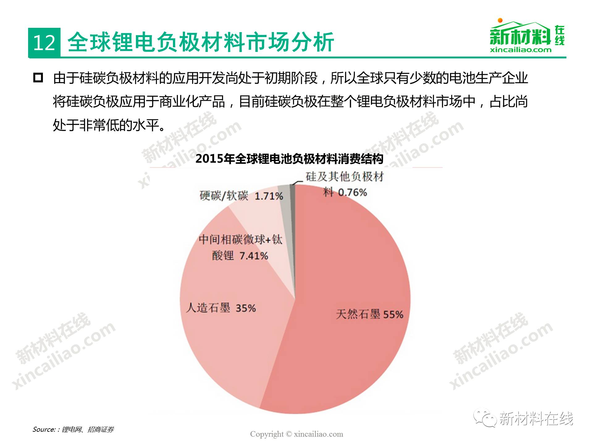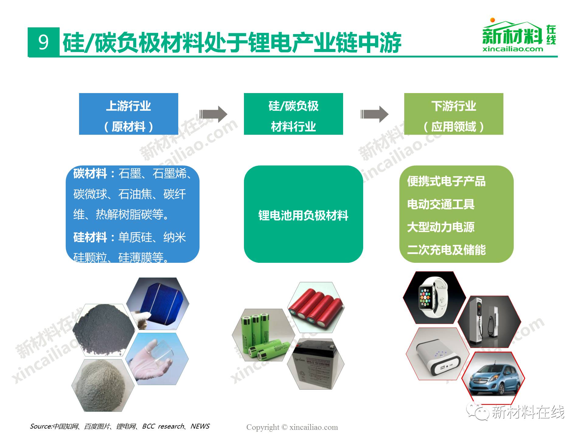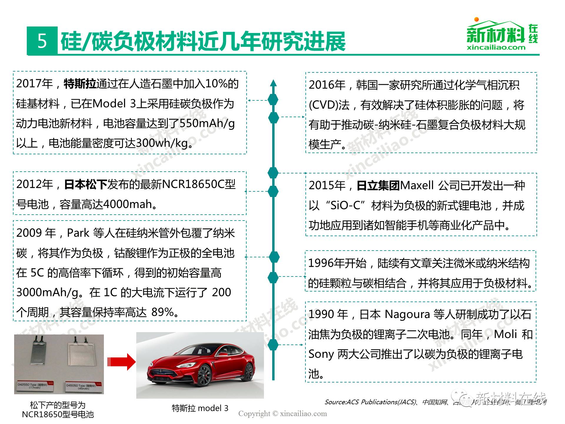 目前鋰離子電池負(fù)極材料主要包括石墨碳、硅的復(fù)合物、錫與碳的復(fù)合物、鈦氧化物、金屬鋰等,主要的性能指標(biāo)比較如表16所示,其中,硅/錫/碳、金屬鋰的比容量相對于石墨實(shí)現(xiàn)了質(zhì)的提升,將是未來高比能鋰電的新選擇,而鈦氧化物(鈦酸鋰材料)主要提高循環(huán)及快充性能。本文主要呈現(xiàn)的是2017全球硅碳負(fù)極材料研究報(bào)告。
