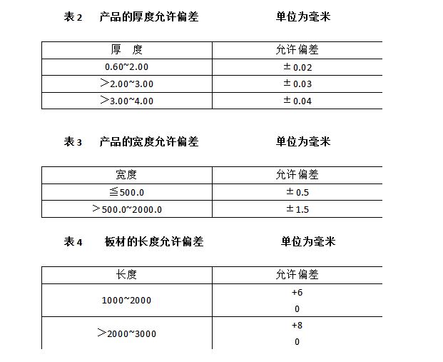 新國(guó)標(biāo)中動(dòng)力電池用鋁的尺寸偏差詳見下表。