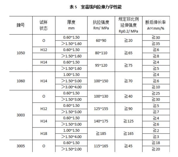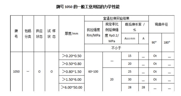 動(dòng)力電池用鋁的室溫拉伸力學(xué)性能需符合下表的規(guī)定。