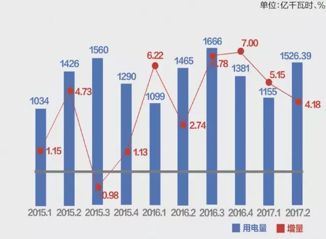 2015-2017年廣東全社會(huì)用電量及增速情況